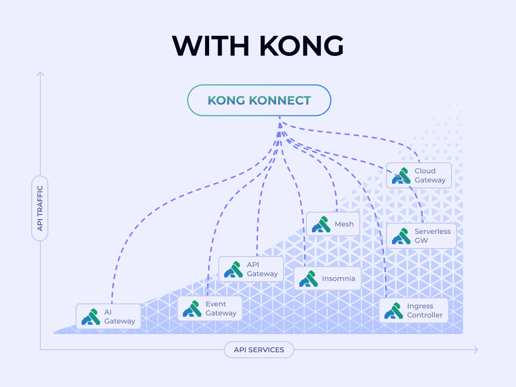 Kong Konnect is a comprehensive, cloud-based (SaaS) platform for managing the entire API lifecycle. It provides unified control over all your APIs and event streams, regardless of where they are hosted – in the cloud, on-premises, or in hybrid environments. With Kong Konnect, you gain full visibility.